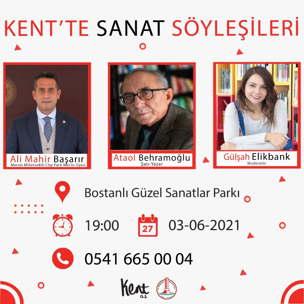 Karşıyaka Belediyesi iştiraki Kent A.Ş. tarafından düzenlenen; şehre rengini, ruhunu ve neşesini yeniden kazandıracak olan açık hava söyleşilerinin ilki, Bostanlı Güzel Sanatlar Parkı’nda yapıldı. Yazar Gülşah Elikbank’ın moderatörlüğünde gerçekleşen söyleşinin konukları, şair…