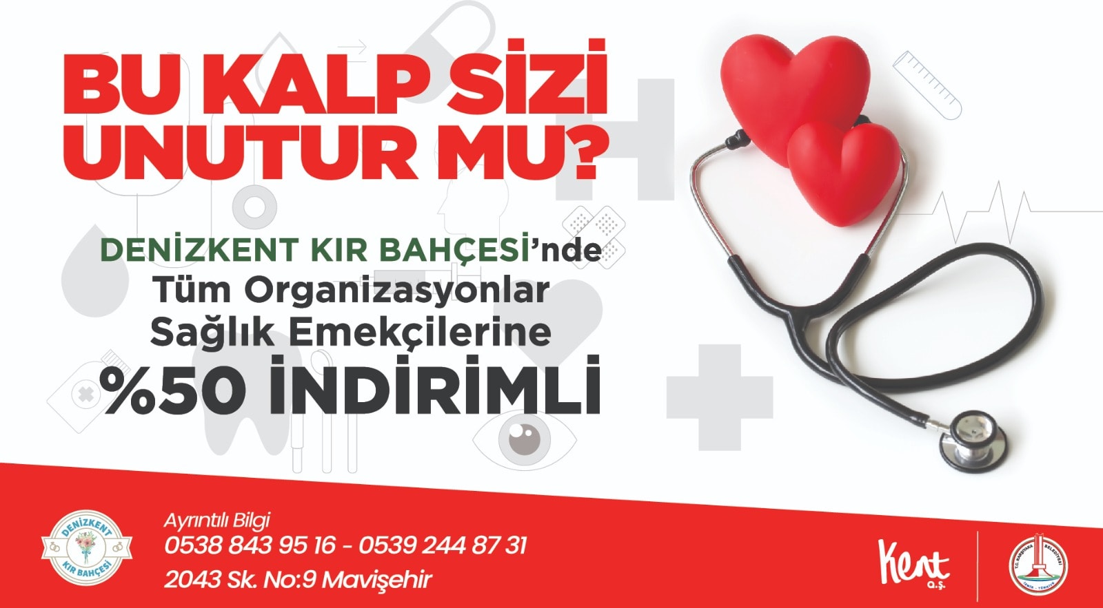 Karşıyaka Belediyesi iştiraki Kent A.Ş. Karşıyaka Belediye Başkanı Dr. Cemil Tugay’ın isteğiyle Denizkent Kır Bahçesi’nde yapılacak tüm organizasyonlarda sağlık çalışanlarına %50 destek uygulayacak.
