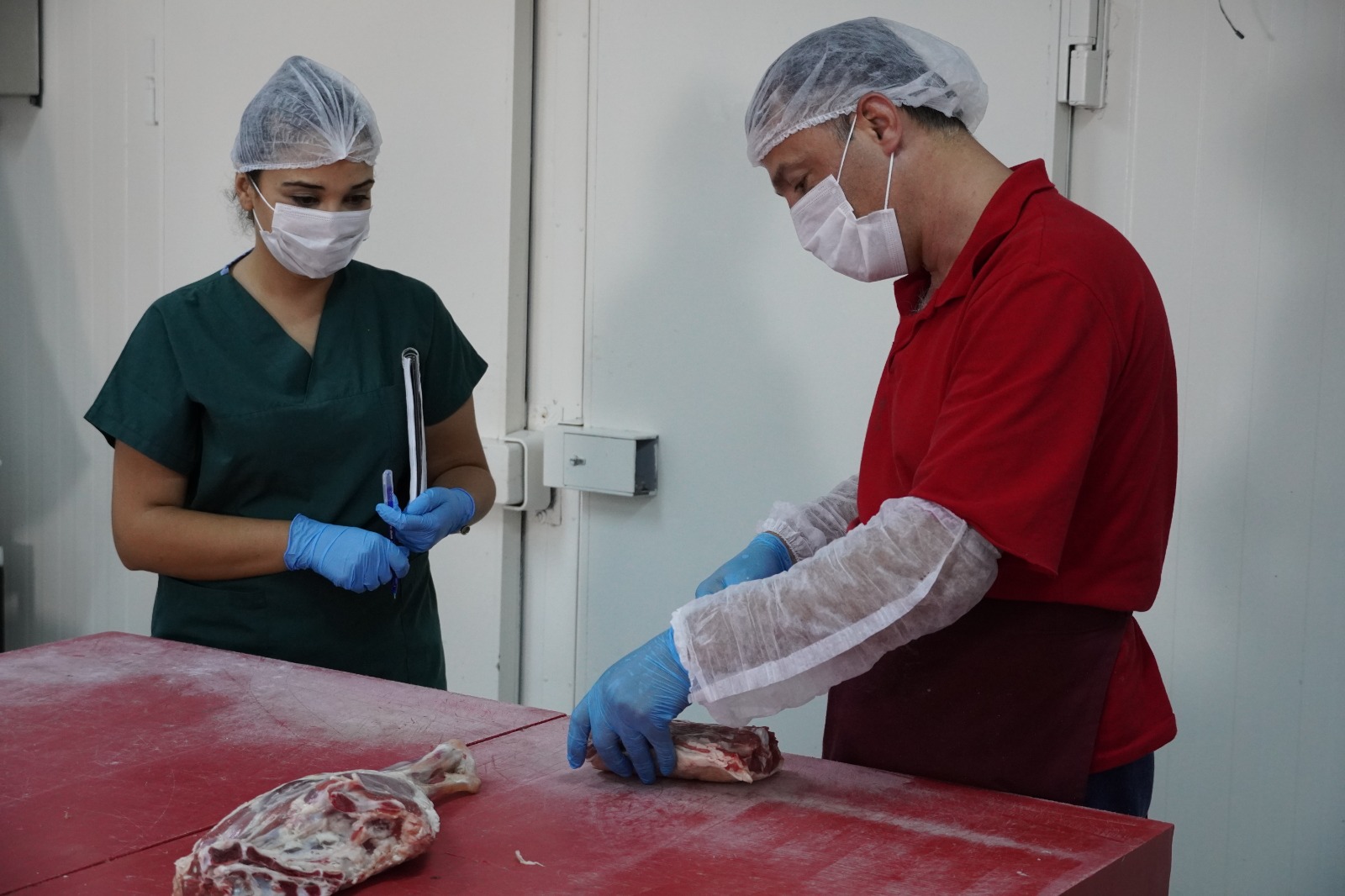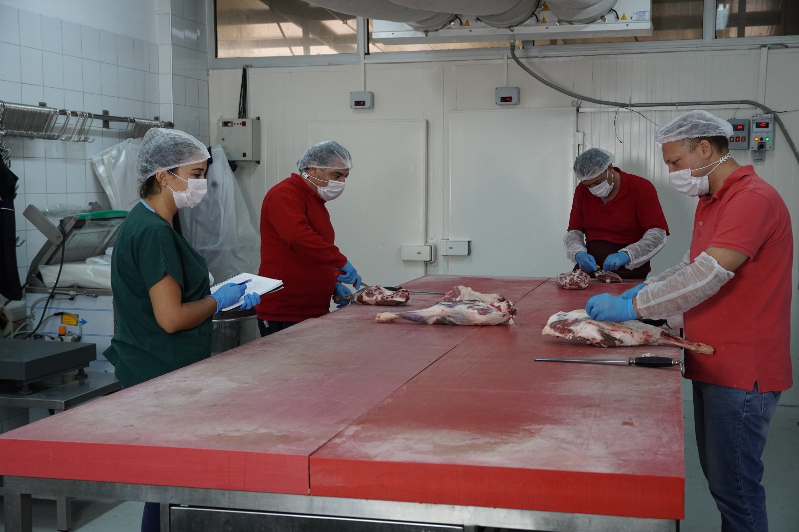 Kent A.Ş. Et Üretim Tesisi’nde Covid-19 sonrası alınan önlemler hakkında konuşan Veteriner Hekim Selin Kulaksız “Korona dönemi dışında da et üretim tesislerinde dezenfeksiyona ve hijyene çok önem verilmelidir. Tesisin içi 12 derece veya altında olmalıdır. Korona döneminde et üretim tesisimizin girişine hijyen bariyerleri yerleştirdik ve ateş ölçümü yaptık.  Çalışan arkadaşlarımız; kolluk, eldiven,  bone maske ve siperlik ile çalışmalarına devam ettiler. Rutin kullanımın dışına çıkarak, etlerin parçalanması ve vakumlanması sırasında sürekli olarak eldiven değişimi yapıldı. Günlük iki olan tesis dezenfeksiyonunu dörde çıkardık.” dedi. Kent A.Ş. Et Üretim Tesisi’nin İzmir İl Tarım ve Orman Müdürlüğü’ne bağlı olduğunu vurgulayan Selin Kulaksız “İlçe Tarım Müdürlüğü tarafından korona virüs sonrası yapılan denetimlerde, Müdürlük yetkilileri aldığımız önlemler için teşekkürlerini ilettiler.” dedi.