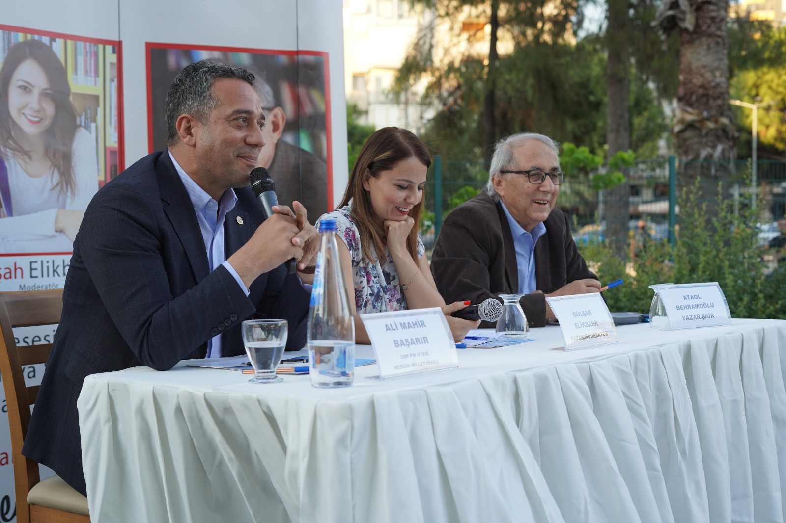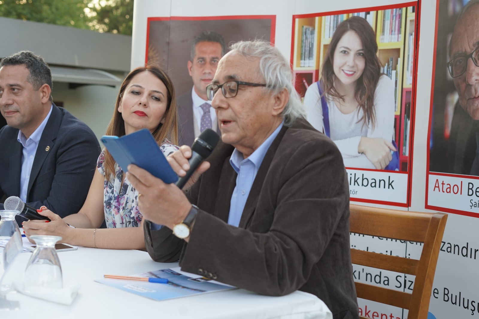 Karşıyaka Belediyesi iştiraki Kent A.Ş. tarafından düzenlenen; şehre rengini, ruhunu ve neşesini yeniden kazandıracak olan açık hava söyleşilerinin ilki, Bostanlı Güzel Sanatlar Parkı’nda yapıldı. Yazar Gülşah Elikbank’ın moderatörlüğünde gerçekleşen söyleşinin konukları, şair ve yazar Ataol Behramoğlu ve CHP Mersin Milletvekili, PM Üyesi Ali Mahir Başarır oldu.
