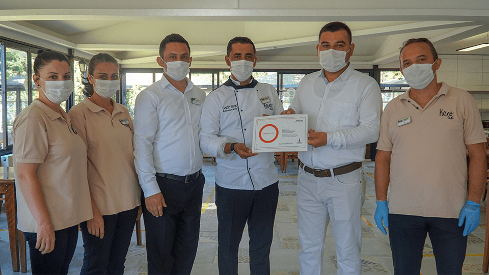 İzmir’deki işletmelerin salgın sürecine uyumunu kolaylaştırmak ve İzmir’in güvenli biçimde bu süreci atlatmasını sağlamak amacıyla oluşturulan Turuncu Çember Sertifikası için başvuruda bulunan Kent A.Ş., tesislerinin hijyenik ve güvenilir mekanlar haline dönüşmesini hedeflemişti. Kent A.Ş’nin faaliyette olan tesislerine İzmir Turizm Hijyen Kurulu tarafından 5 saat süren “Turuncu Çember Sertifikası” denetimi yapıldı. Tesislerde incelemelerde bulunan kurul, Kent A.Ş.’nin hizmette olan üç tesisine de tam not verdi. Ekmeklerin ambalajlı olarak servis edilip edilmediği, dezenfektan bulunup bulunmadığı, klima filtrelerinin yetkili şirket tarafından düzenli olarak temizlenip temizlenmediği gibi 52 kriteri denetleyen İzmir Turizm Hijyen Kurulu, Kent A.Ş. tesislerinin Turuncu Çember Sertifikası için gerekli koşulları sağladığını onayladı.